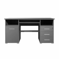 Schwarzer Schreibtisch Aus Holz Gebürstet & Lackiert – Almery