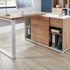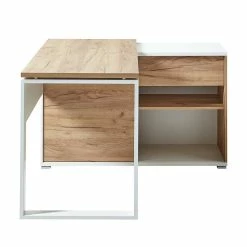 - Komfortabler Winkelschreibtisch in Wildeichefarben und Weiß