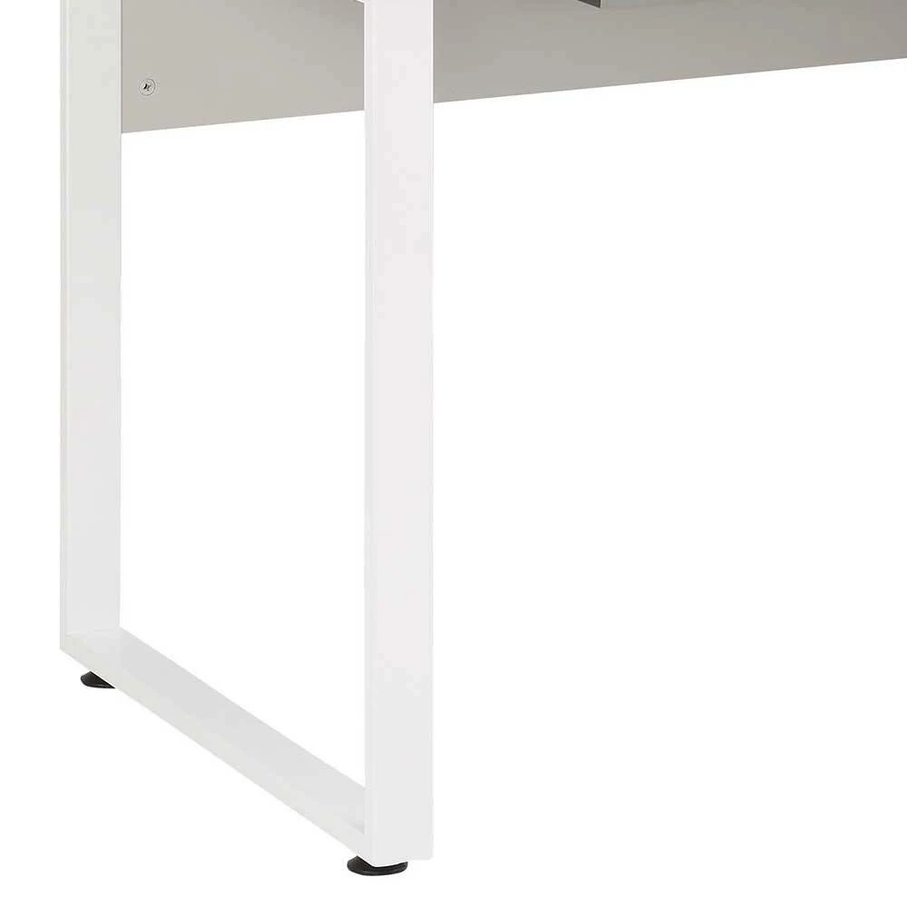 - Das Fußgestell besteht aus einem in Weiß pulverbeschichtetem Stahlbügel und einem Schrankelement, ausgestattet mit schwarzen Kunststoff-Bodenschonern