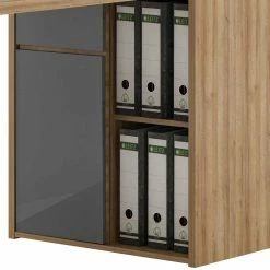 - Regal-Element mit Schiebetür, vier Glas- und vier Holzwerkstoffböden