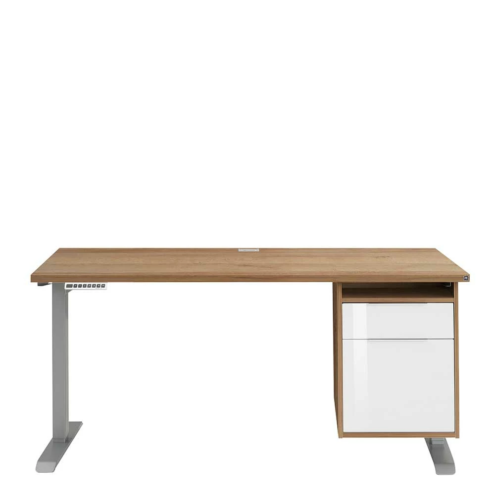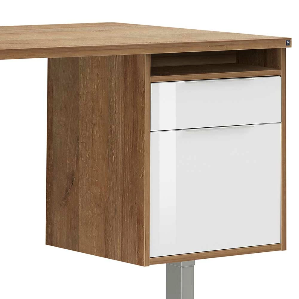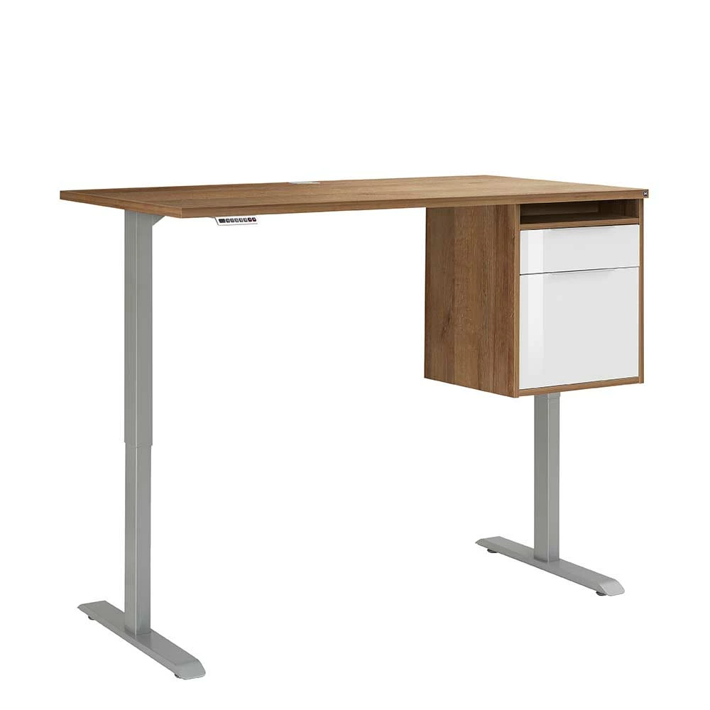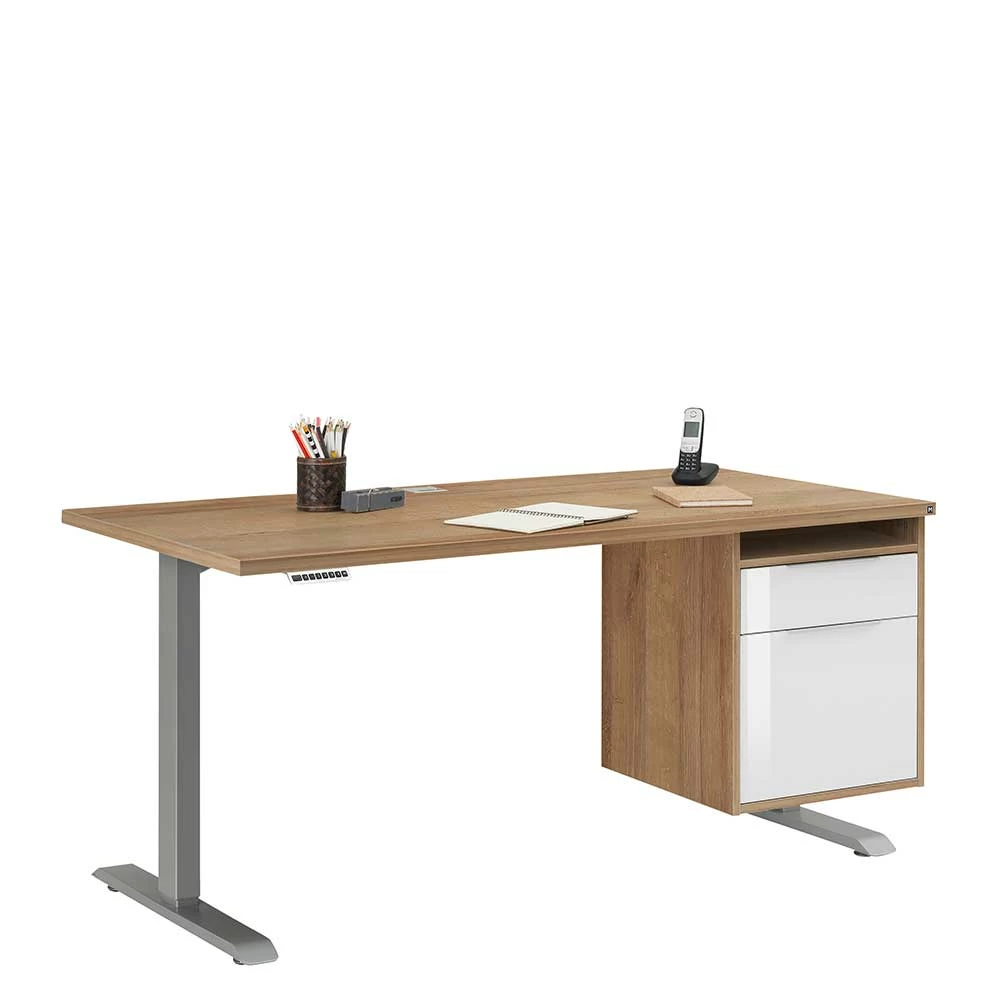 - Exzellenter Schreibtisch in Wildeichefarben, Weiß und Platingrau
