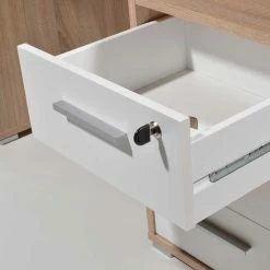 - Rechts 3 Schubladen mit Metallauszug, oberste Schublade abschließbar
