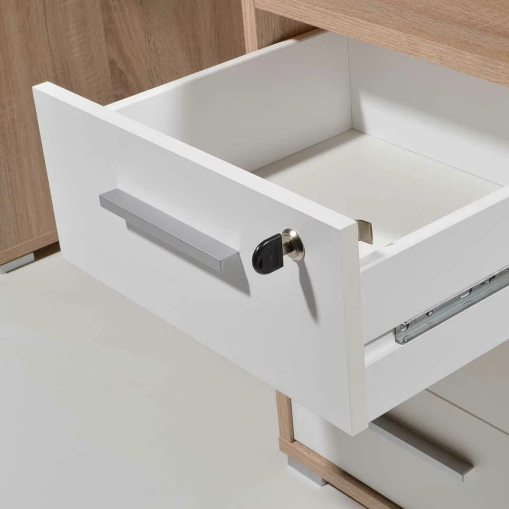 - Moderner Schreibtisch in den Farben Sonoma-Eiche-Nachbildung und Weiß