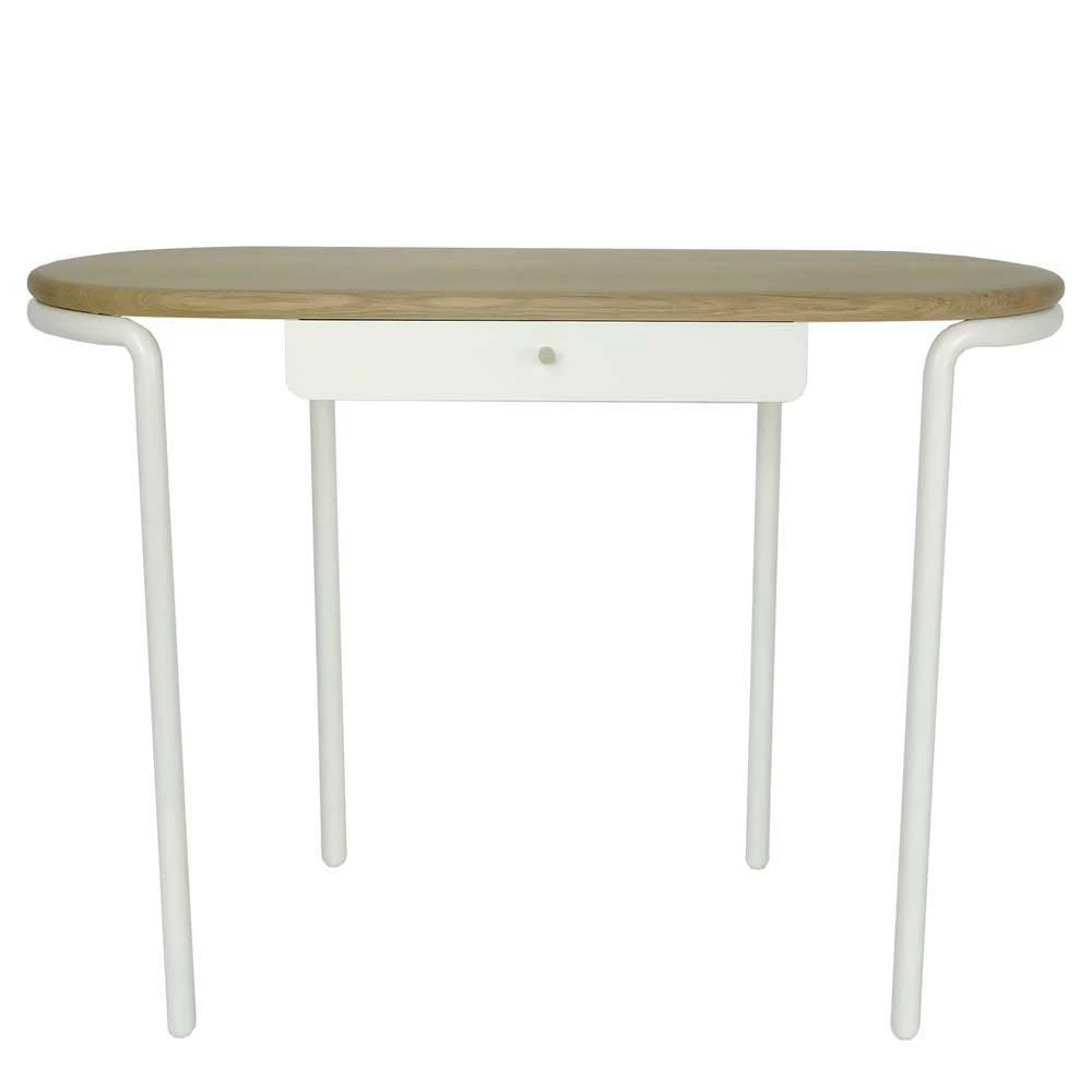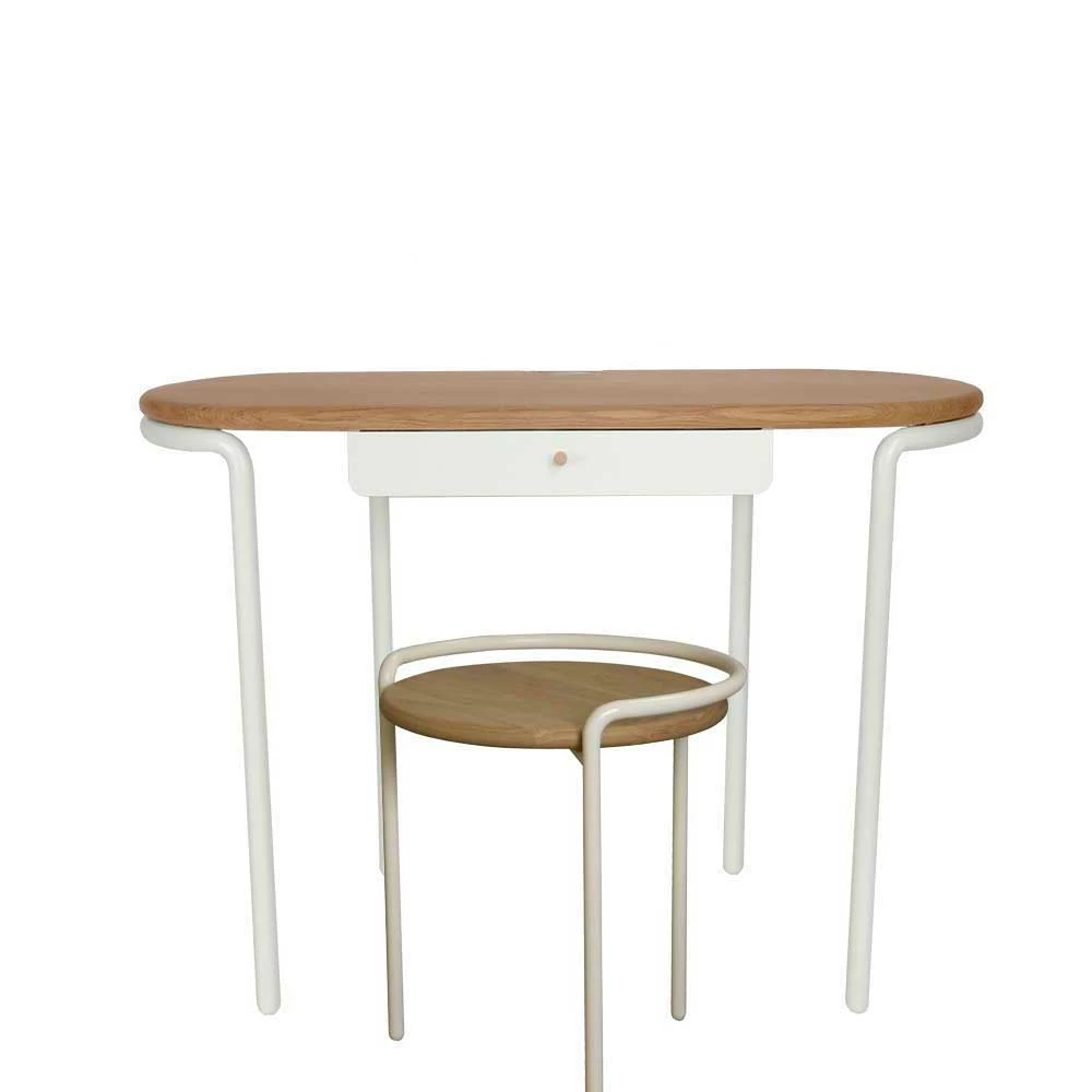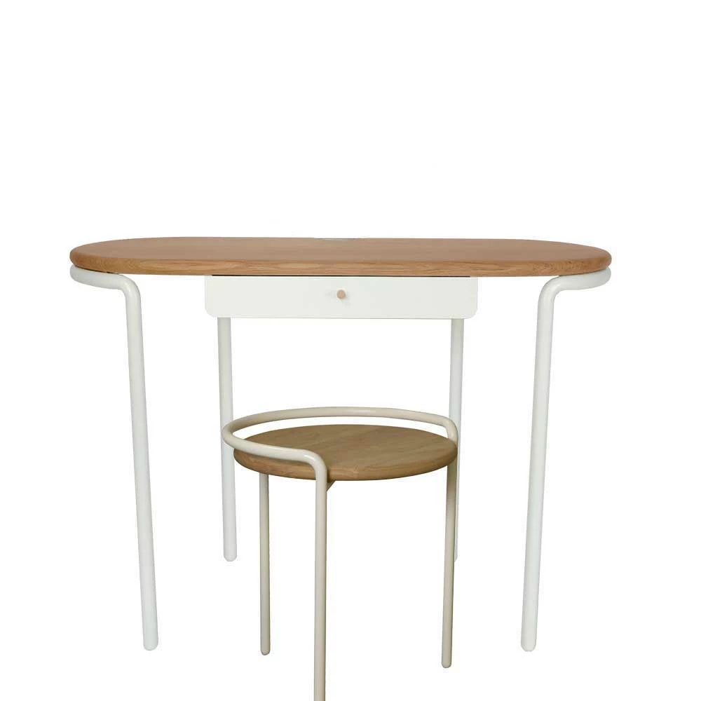 - Aparter Schreibtisch mit passendem Hocker in Weiß und Eichefarben
