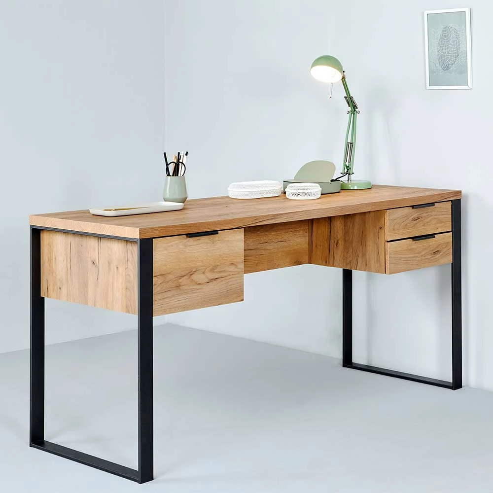 - Hervorragender Schreibtisch in Kerneichefarben und Schwarz