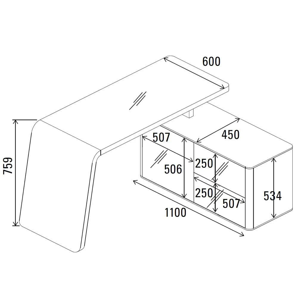 - Maße der Arbeitsplatte: BxT: 134×60 cm