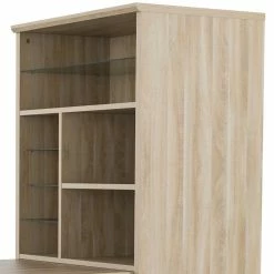 - Regal-Element mit Schiebetür, vier Glas- und vier Holzwerkstoffböden