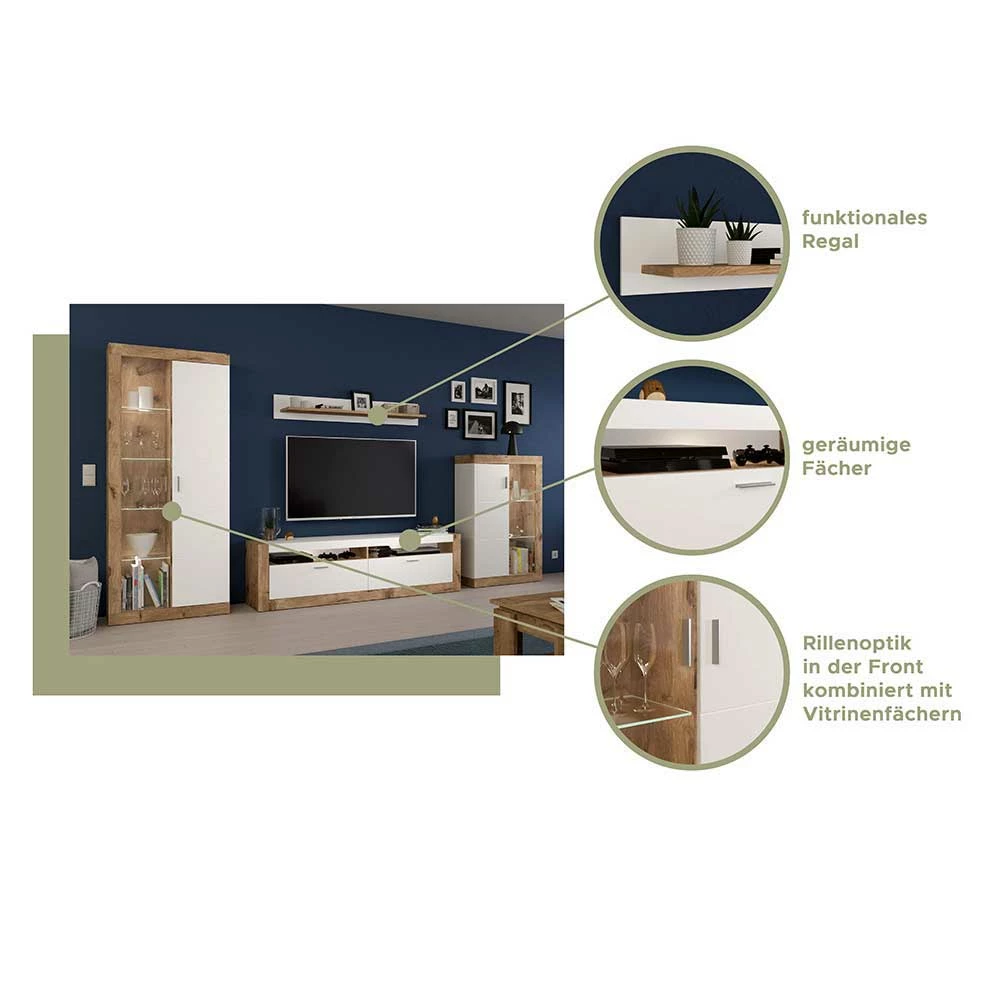- Attraktives Wandboard in Weiß matt und Wildeichefarben