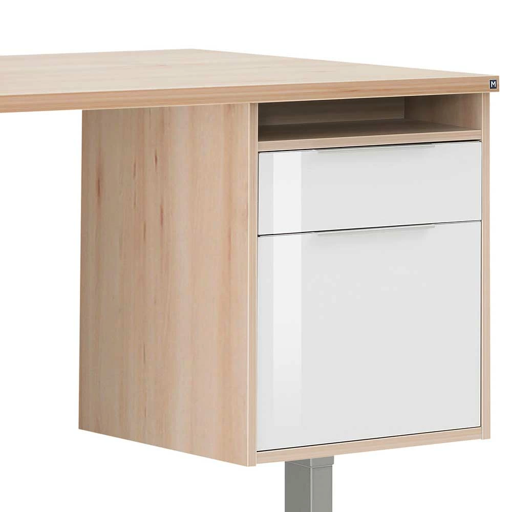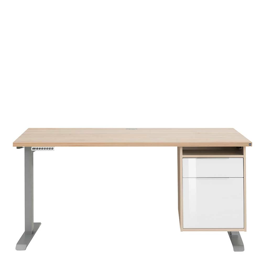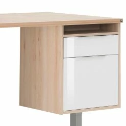 - Qualitätsvoller Schreibtisch in Buchefarben, Weiß und Platingrau
