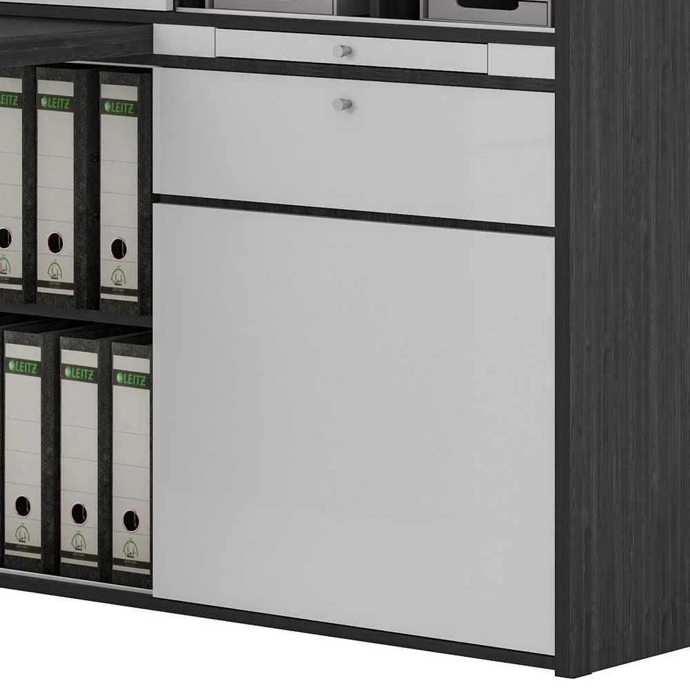 - Strapazierfähige Oberflächen durch Melaminbeschichtung in Holzoptik Eiche Grau und hochglänzend, wasser- und fettabweisend, kratzfest
