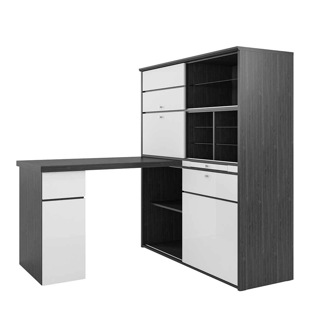 - Komfortables Mini Office in Weiß und Eiche Grau