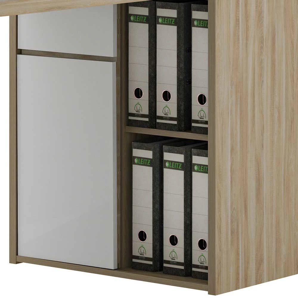 - Strapazierfähige, kratzfeste Melaminbeschichtung in Hochglanz und Holzoptik Eiche, zudem wasser- und fettabweisend