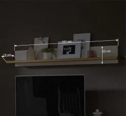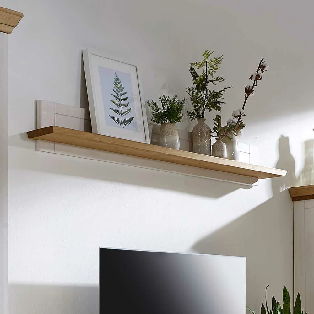 - Stilvolles Wandregal in Weiß und Eichefarben