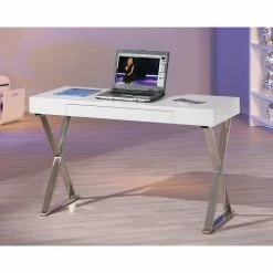 - Gelungener Schreibtisch in Weiß Hochglanz und Chromfarben