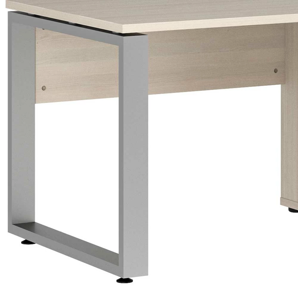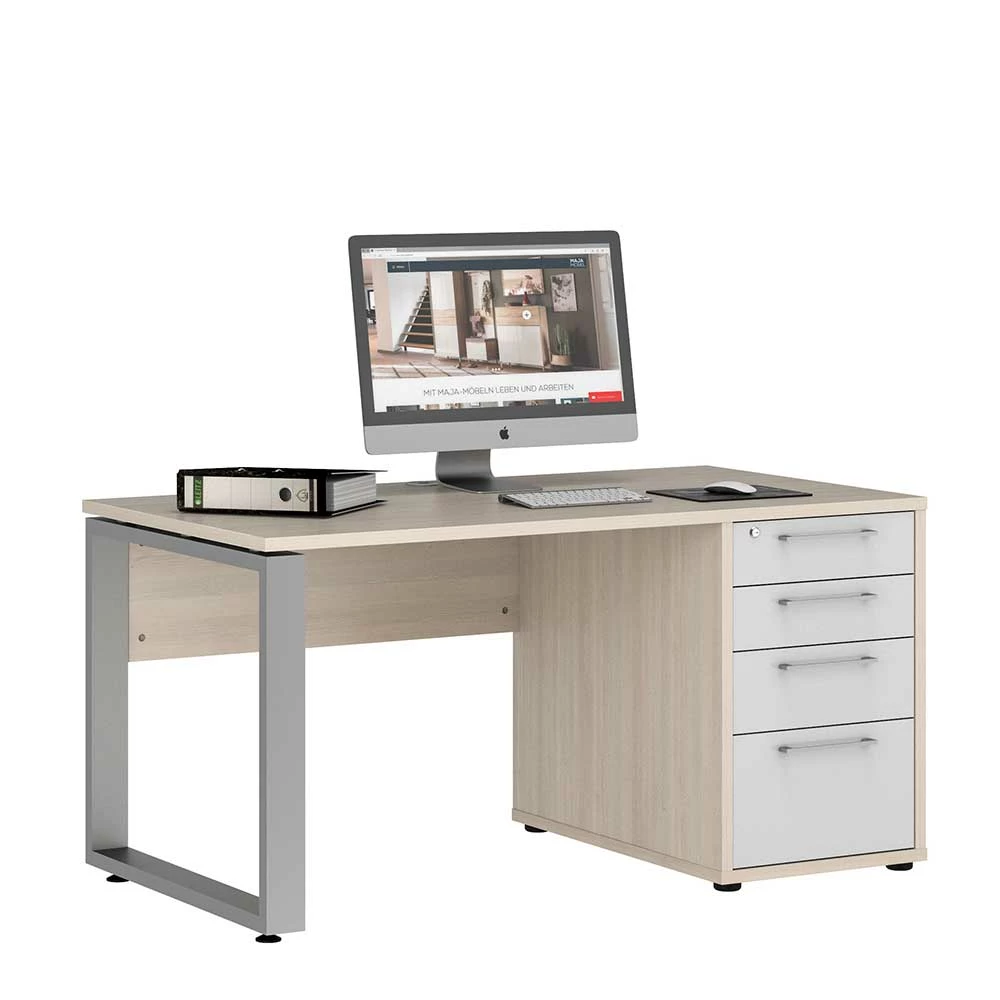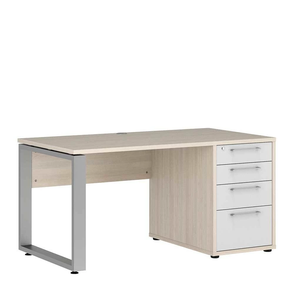 - Attraktiver Schreibtisch in Holz White Wash, Weiß und Alufarben