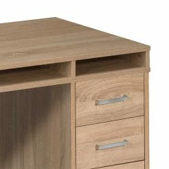 - Reichlich Stauraum für Büroutensilien bieten zusätzlich zu den Schubladen drei offene Fächer unterhalb der Tischplatte
