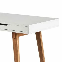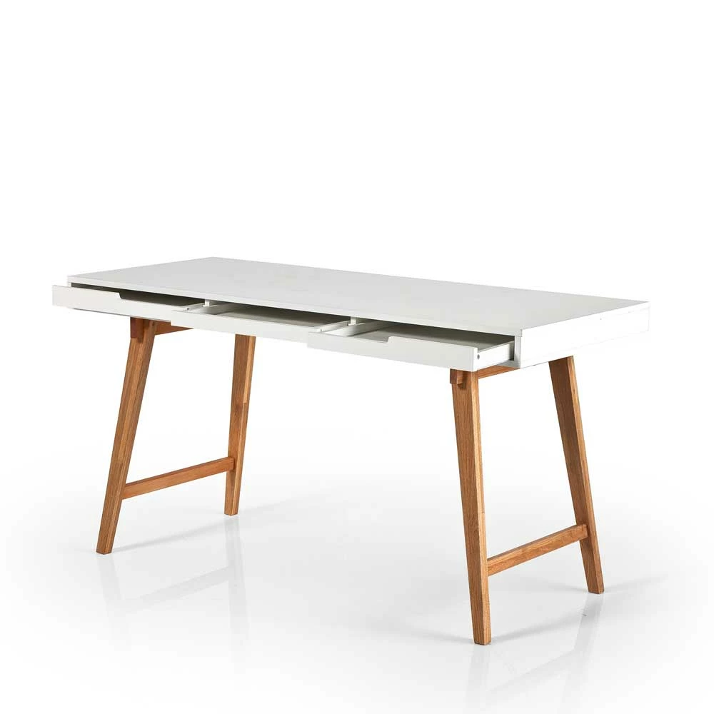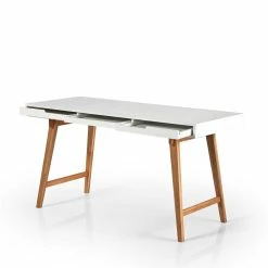 - Moderner Schreibtisch in mattem Weiß und Buchefarben