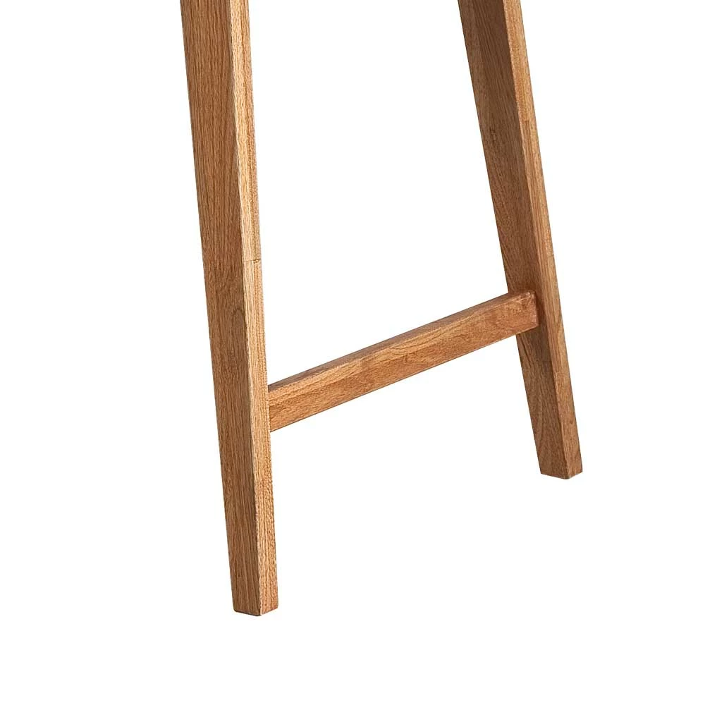 - Leicht nach außen gestellte Tischbeine, mit Querstreben