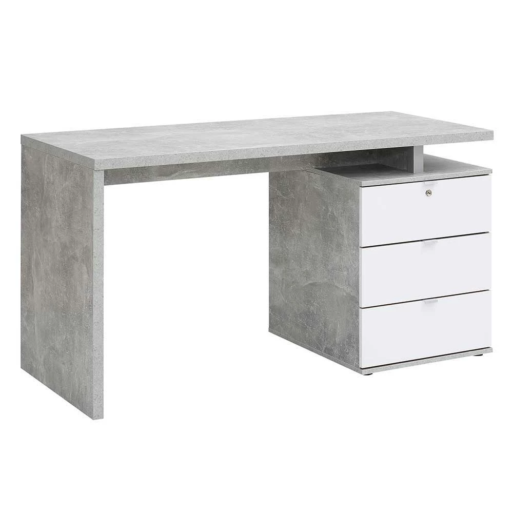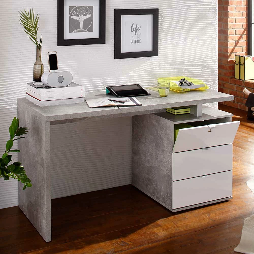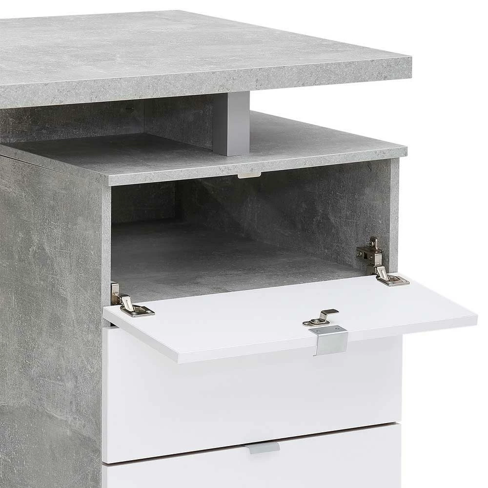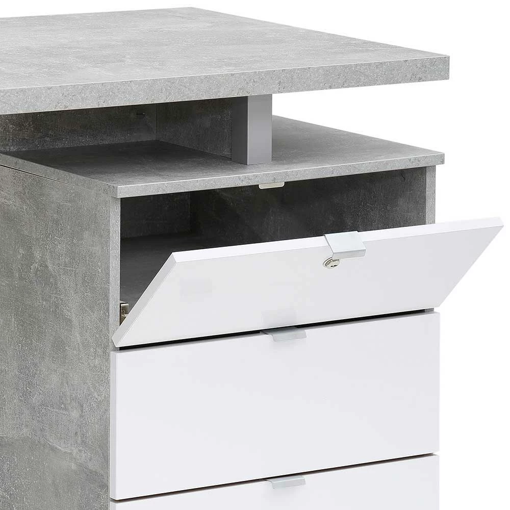 - Großartiger Schreibtisch in Weiß Hochglanz und Beton Grau