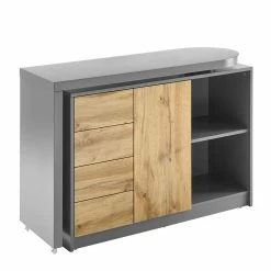 - Funktioneller Kombi Schreibtisch in Grau und Eichefarben