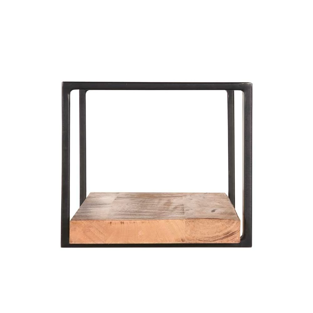 - Kantige, geschlossene Metallrahmen halten jeweils einen Massivholzboden