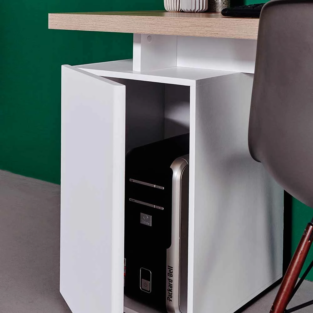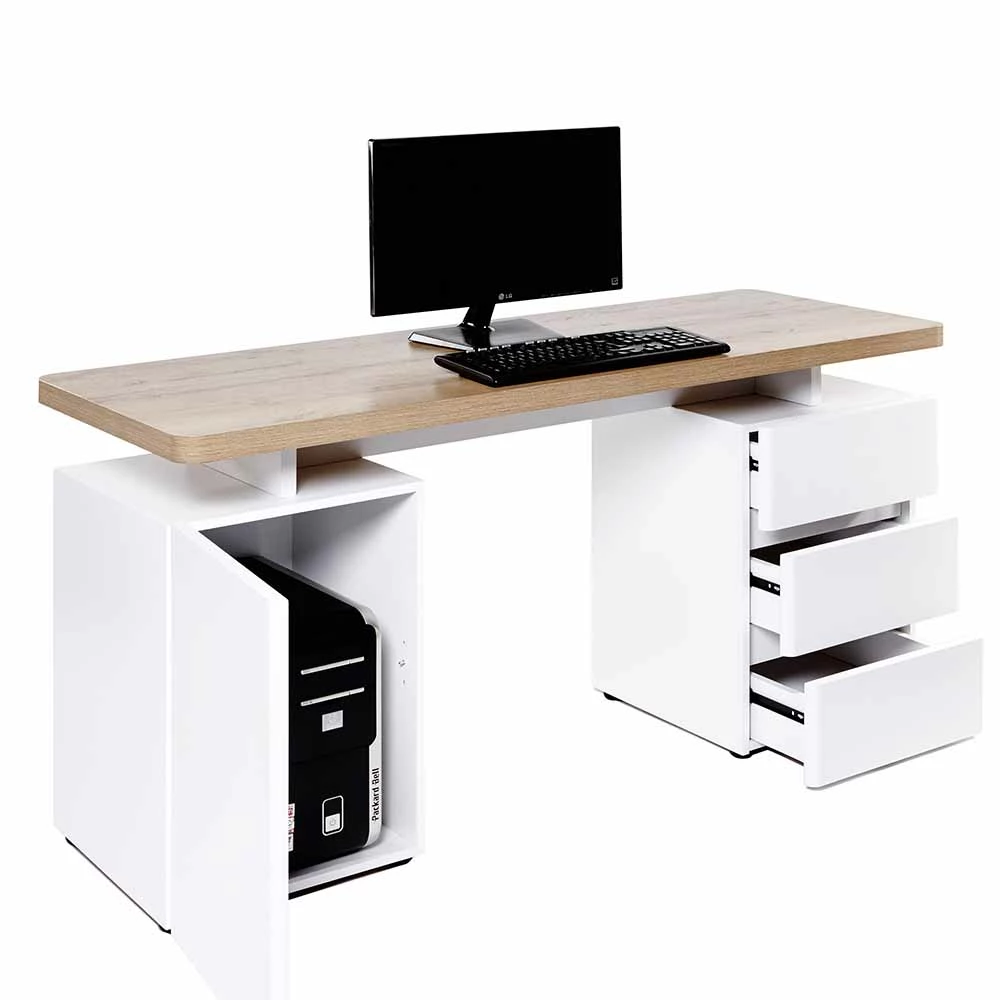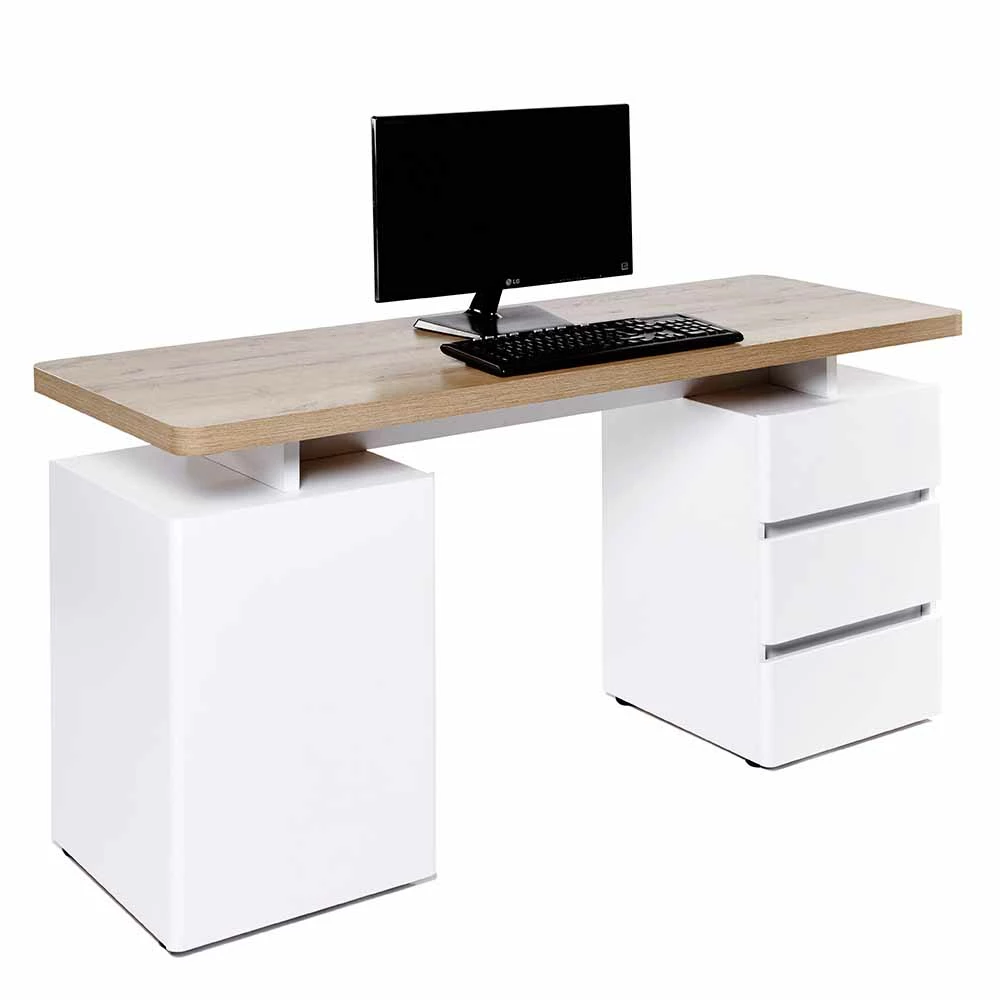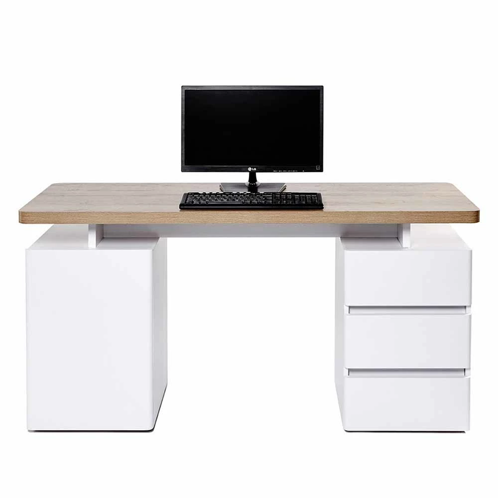 - Zeitgemäßer Schreibtisch in Weiß und Eichefarben