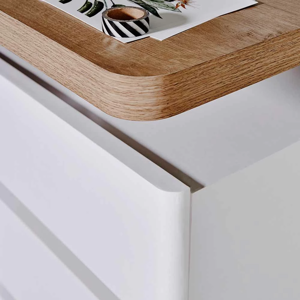 - Oberflächen in Weiß und im Holzdekor Eiche foliert